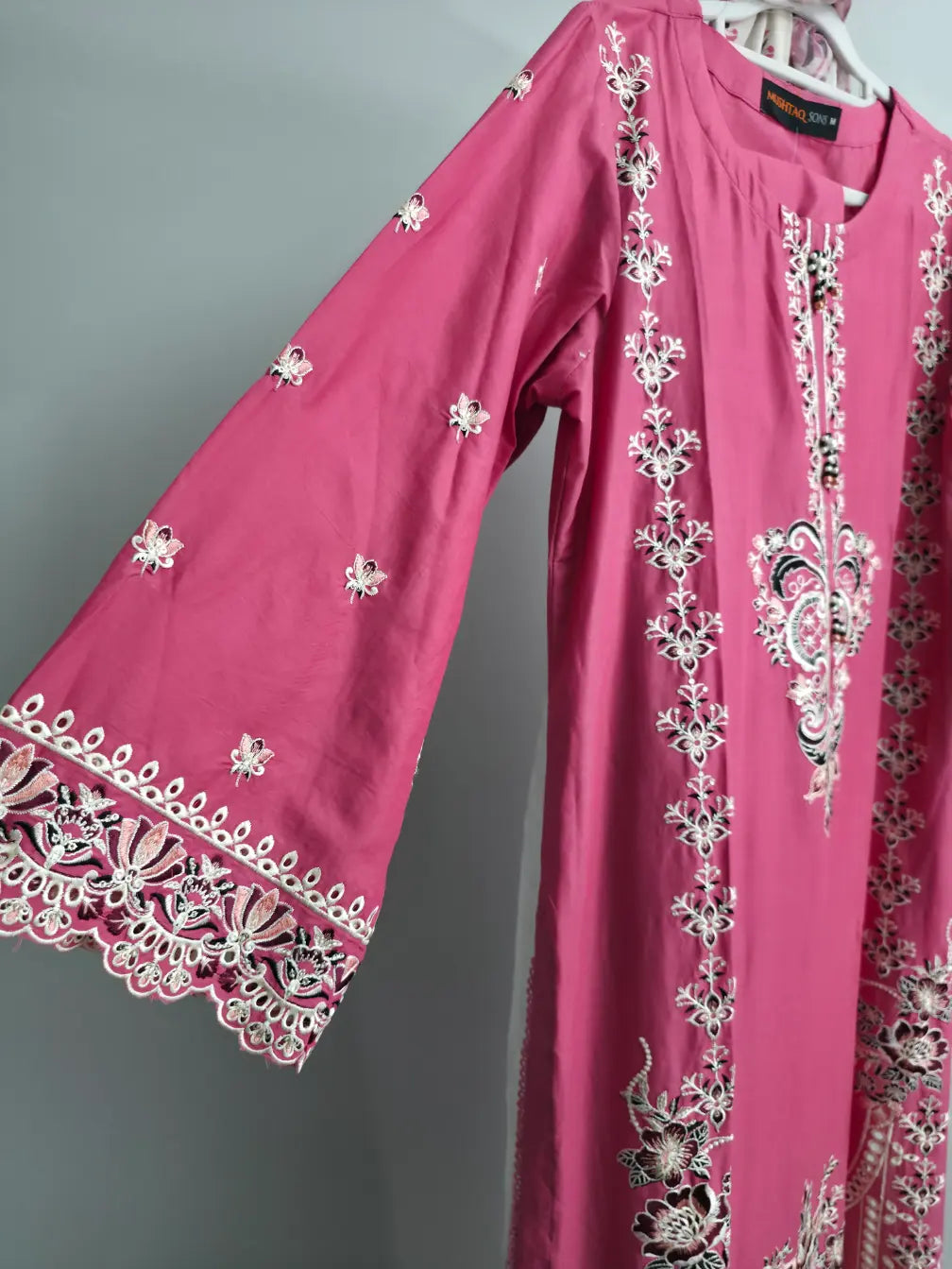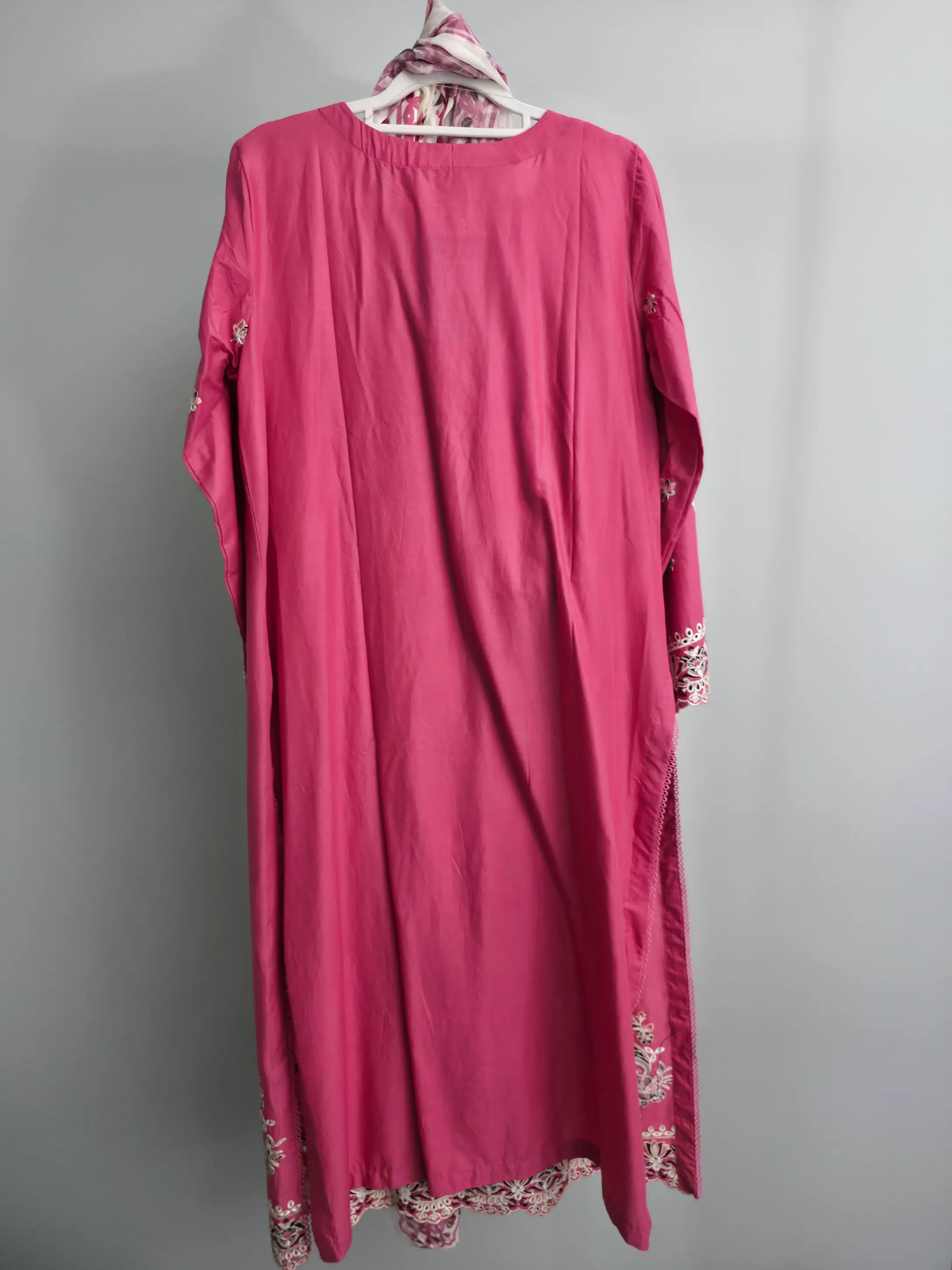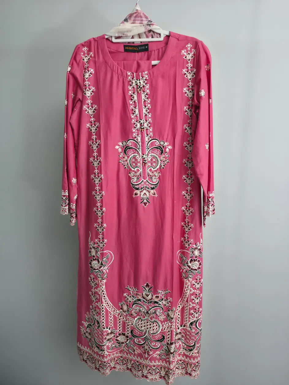 Add a touch of grace to your wardrobe with this charming pink 3-piece embroidered slub cotton suit. 🌸✨