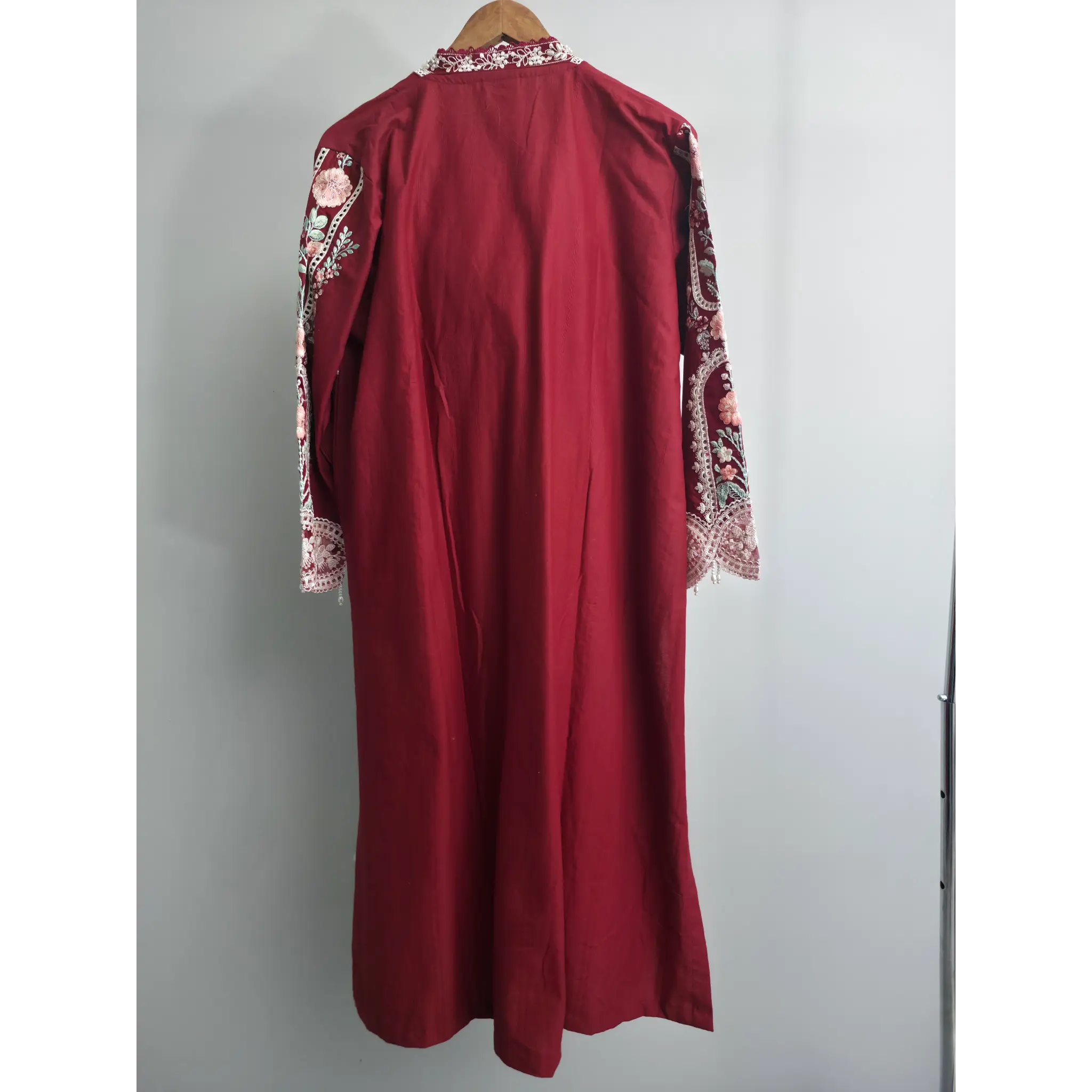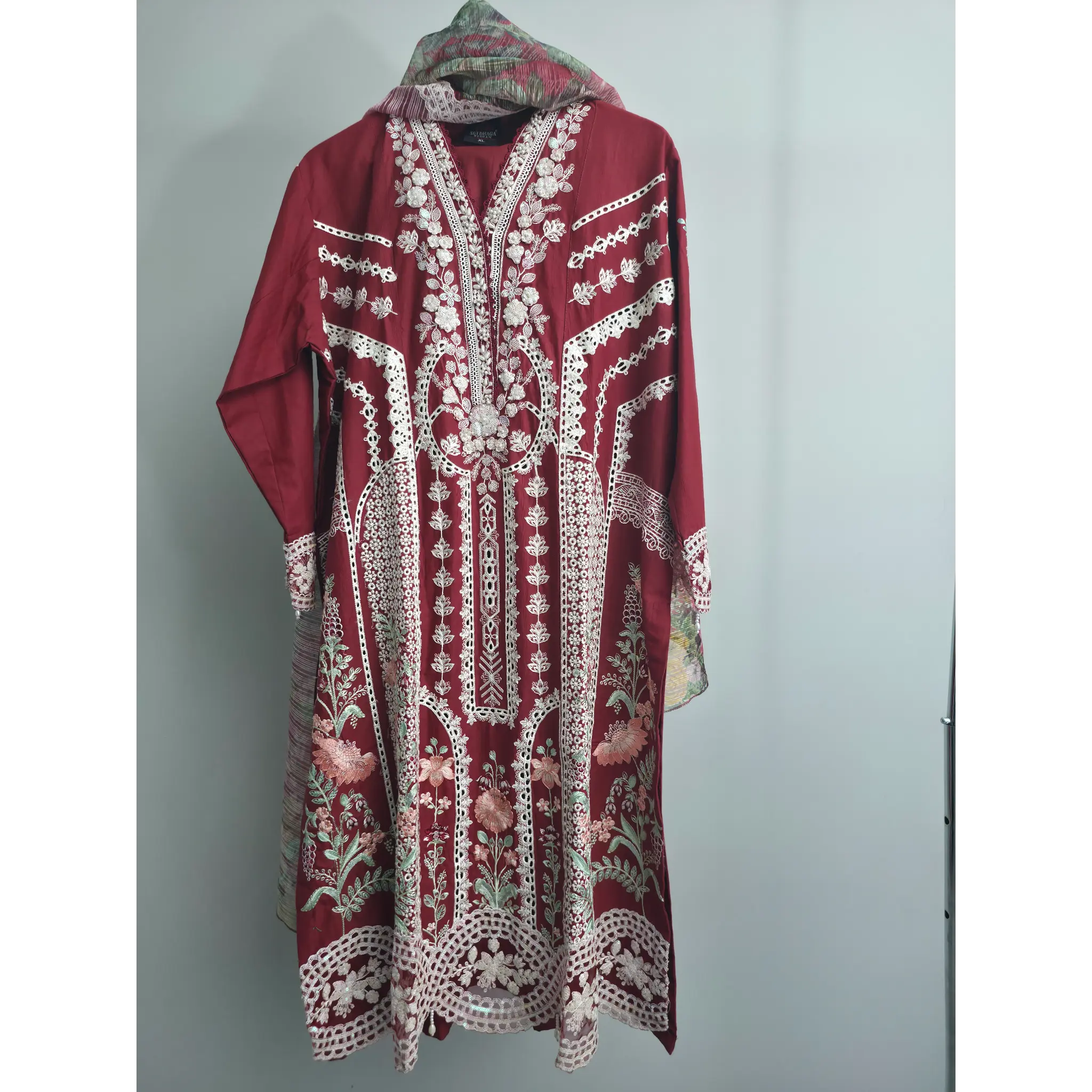 Make a bold statement with this elegant red 3-piece outfit, crafted in premium slub cotton and finished with heavy embroidery....