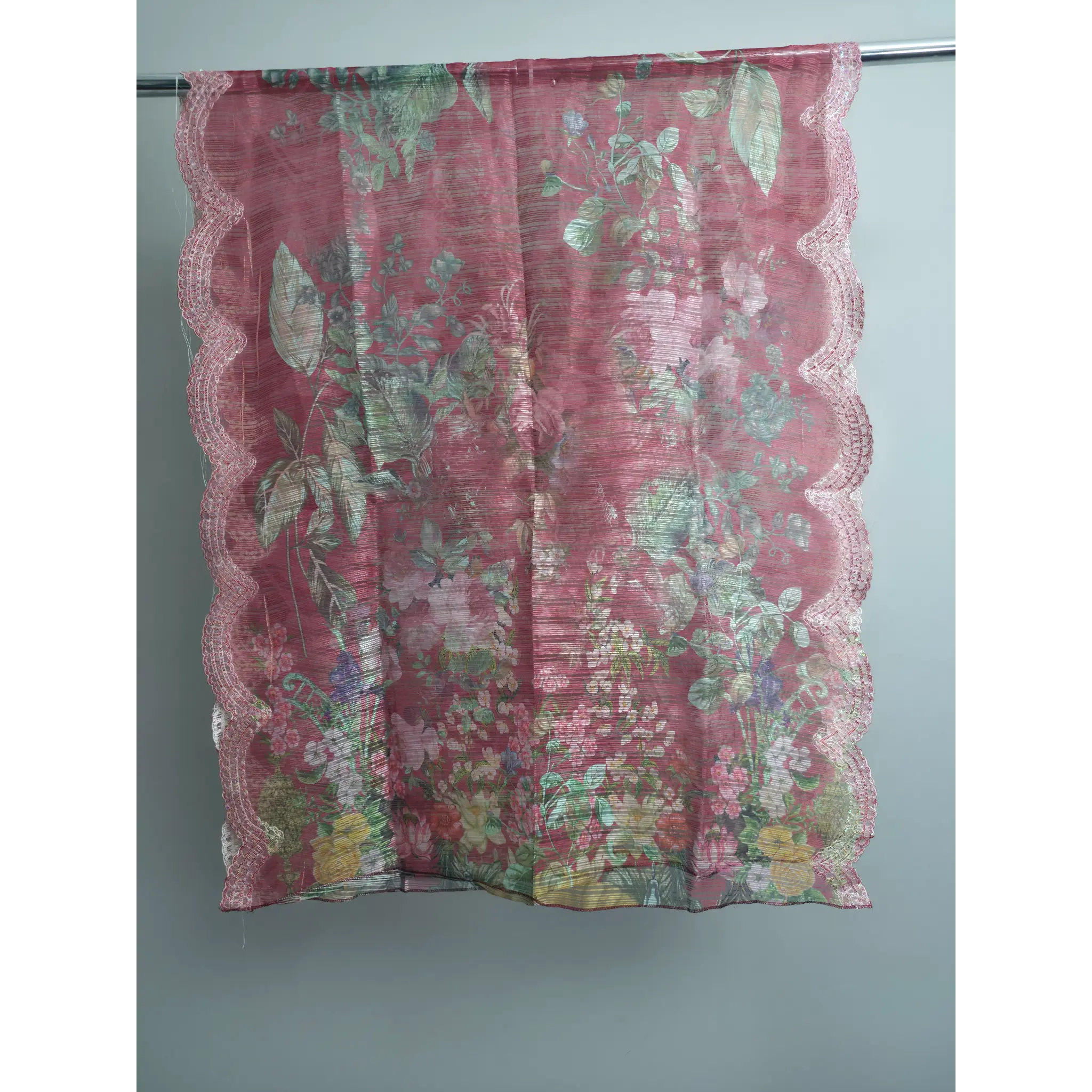Red Slub Cotton Embroidered 3 Piece Suit with Tissue Dupatta