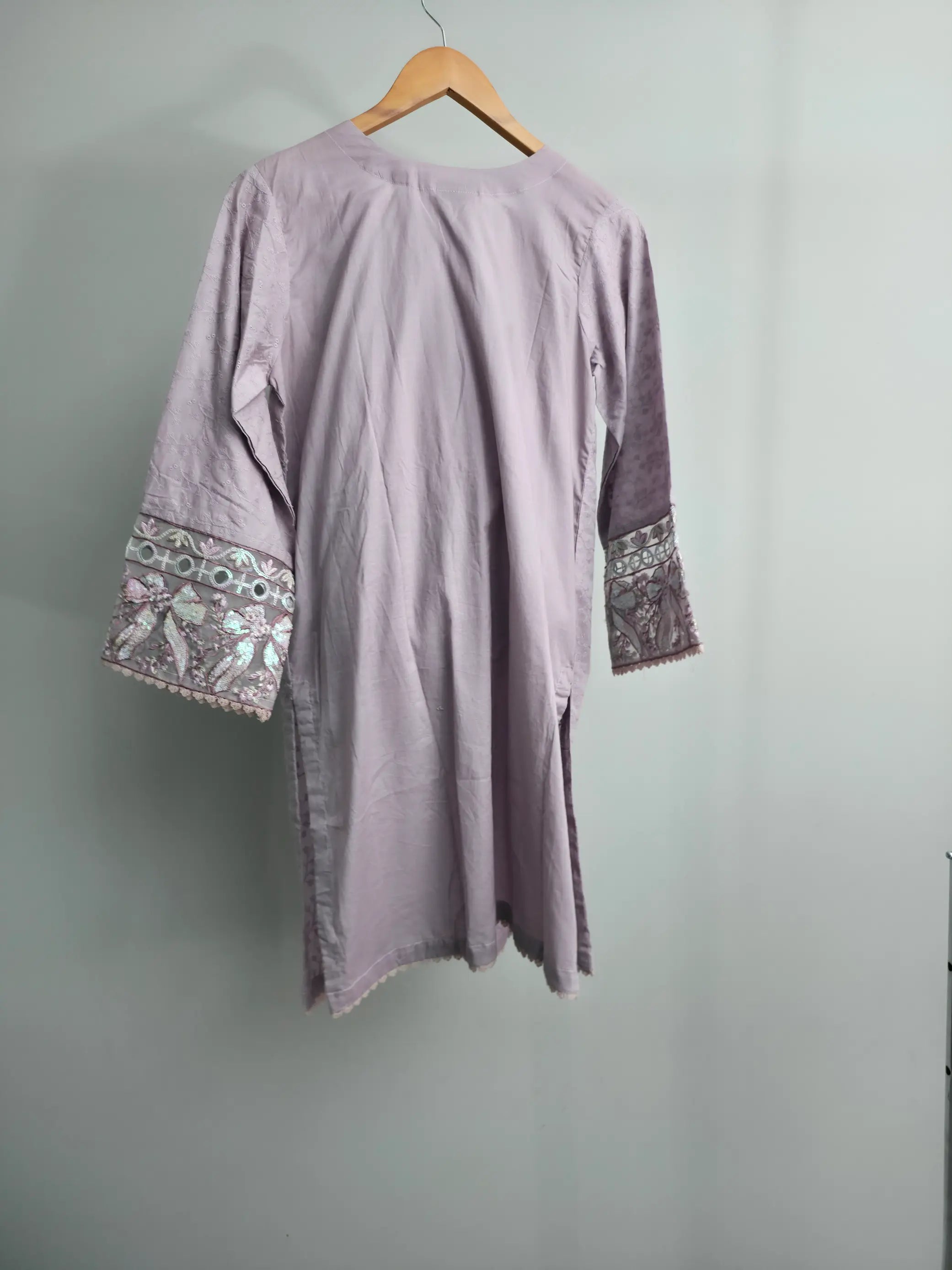1 × Schiffli Embroidered Mid-Length Cotton Shirt